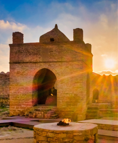 Enjoy breakfast at the hotel before returning to Baku and beginning your Absheron tour. Visit the historic Ateshgah Fire Temple, a 17th-century Zoroastrian and Hindu site, followed by Yanardag (Fire Mountain), where natural flames burn brightly along the hillside. After the tour, proceed to Gabala for your overnight stay.