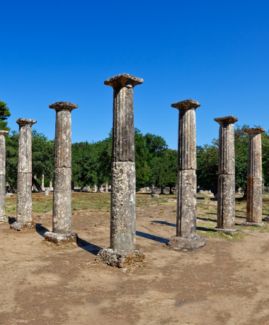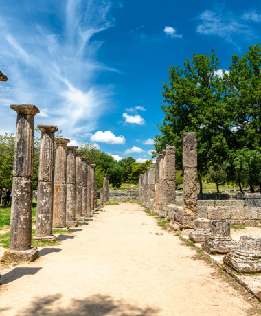 Pause at the impressive Corinth Canal, a narrow waterway carved through towering cliffs—an ideal spot for unforgettable photos. Continue to Epidaurus, renowned for its ancient theatre with remarkable acoustics, still used for performances today. (Optionally, enjoy a leisurely stroll through the charming seaside town of Nafplio.) Arrive in Olympia, the birthplace of the Olympic Games, where history and legend come together.